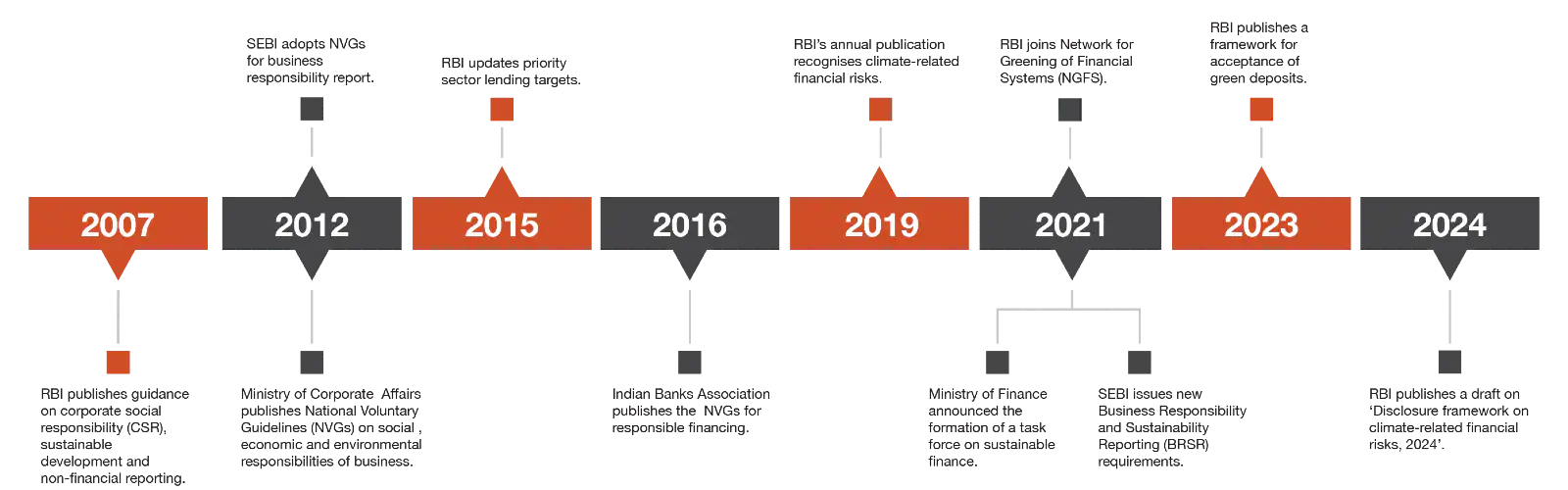 - RBI climate-risk disclosure framework. India’s central bank (RBI) issued a Draft Disclosure Framework on February 28, 2024, aligned with TCFD. Final rules are expected to phase in governance, strategy, and risk management disclosures from FY2026 and metrics and targets by FY2028. This applies to banks and NBFCs; insurers engage through their asset side and groups. It aims to improve transparency and allow supervisors to conduct systemwide climate analysis.