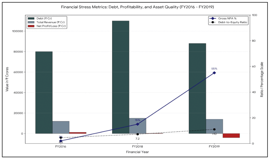 Context and prelude to the crisis- Since its founding in 2004, Yes Bank has established itself as a rapidly expanding private sector bank with a robust corporate lending franchise. Under Rana Kapoor’s leadership, Yes Bank took small steps in building its corporate lending segment and focused on sectors like real estate, Internet Banking, Mobile Technologies, Pharmaceuticals, Renewable energy, Electricals, and Media (Ayush Kumar, 2021). This led to rapid growth, but at the same time, the bank was vulnerable to financial volatility as it had overexposed itself to risky clients. Although the bank initially reported strong profitability and asset quality, RBI inspections later discovered that exposures were heavily concentrated in stressed corporate groups and that non-performing assets (NPAs) were being underreported.